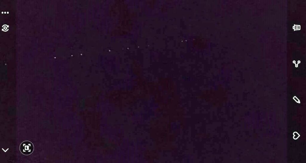 Na verdade, as luzes vistas são de satélites artificiais que formam a “Starlink”, que já estão na órbita da Terra desde 2019.