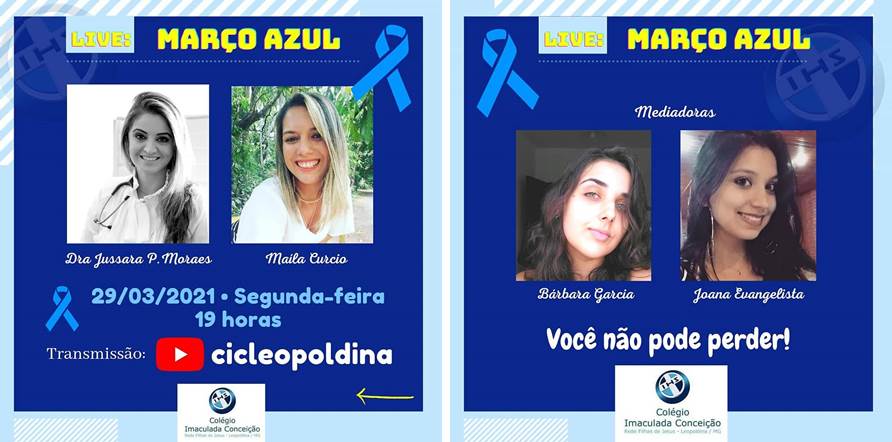 Dando prosseguimento à sua programação de lives em 2021 o Colégio Imaculada Conceição, de Leopoldina, promove nesta segunda-feira, 29 de março, a live “A Campanha do Março Azul”.