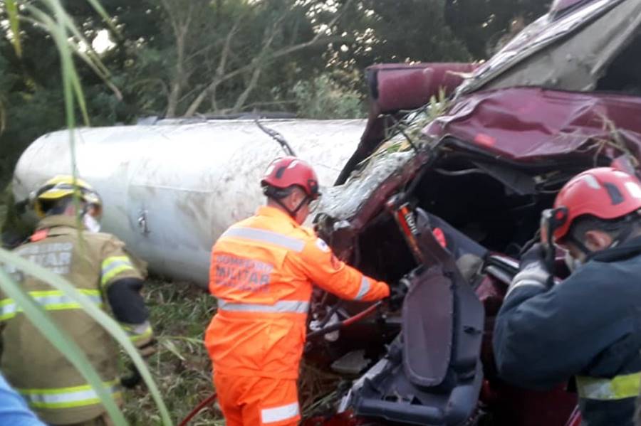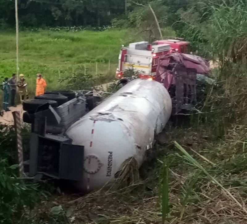Acidente com carreta carregada de gás em Leopoldina mobiliza bombeiros há mais de 36 horas