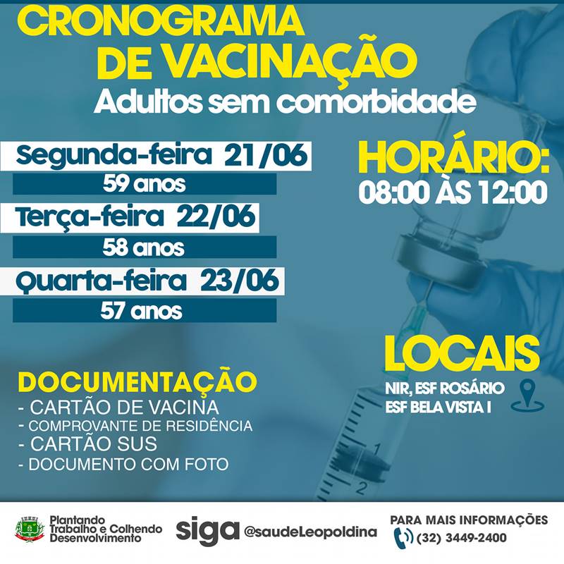 - Segunda-feira dia 21/06, faixa etária de 59 anos;