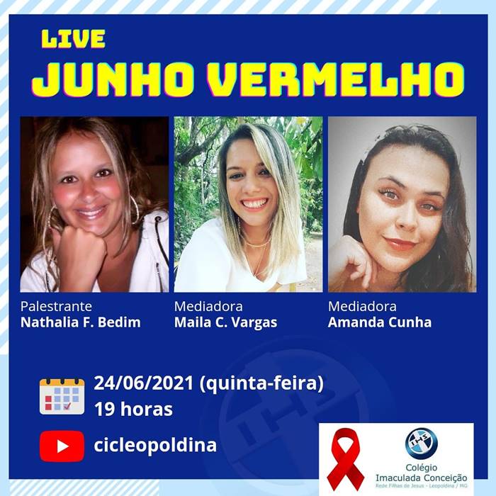 Na quinta-feira, 24 de junho, o Colégio Imaculada Conceição em Leopoldina realiza a live intitulada “Junho Vermelho”, uma referência à campanha que tem o propósito de conscientizar a população quanto à importância da doação de sangue.