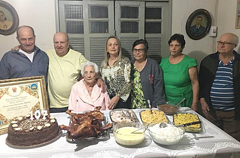 Com os olhos cheios de encanto, a idosa se reuniu com parte da família e fez questão de mostrar a mensagem enviada diretamente da Itália pelo Papa Francisco em razão de seus 107º aniversário.