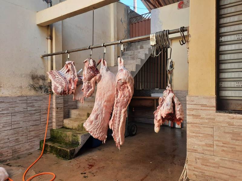 Durante as buscas, foram apreendidos duas carcaças de animais suínos que estavam sendo manuseadas no momento da chegada dos policiais civis, além de carnes e linguiças acauteladas em freezers e câmaras frias que podem ultrapassar o peso de uma tonelada. As carnes eram distribuídas para restaurantes e açougues da região. Apurações indicaram que o suspeito dispensava os resíduos sólidos e líquidos no meio ambiente, sem o devido tratamento e destinação.