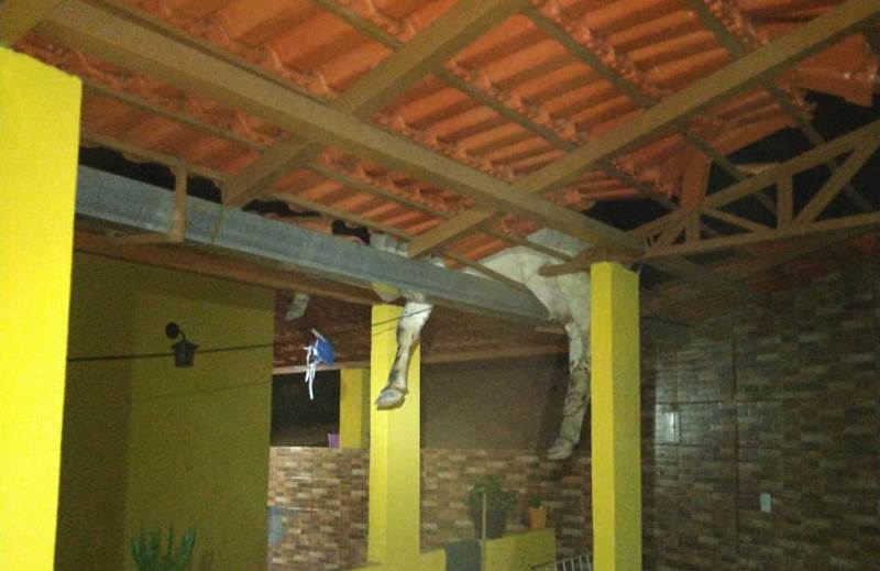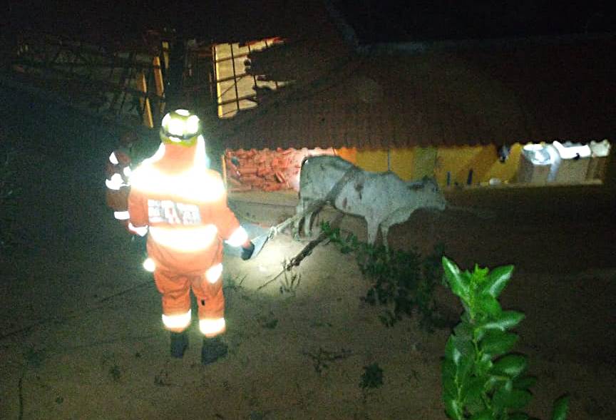 Uma vaca foi resgatada após ficar presa no telhado de uma residência em Além Paraíba no final da noite deste domingo, 22 de agosto.
