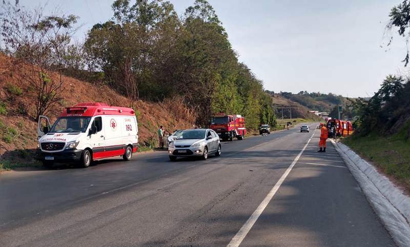 Mais cedo, Corpo de Bombeiros e SAMU socorreram um jovem que ficou ferido depois de um acidente no perímetro urbano da BR-116 em Leopoldina.