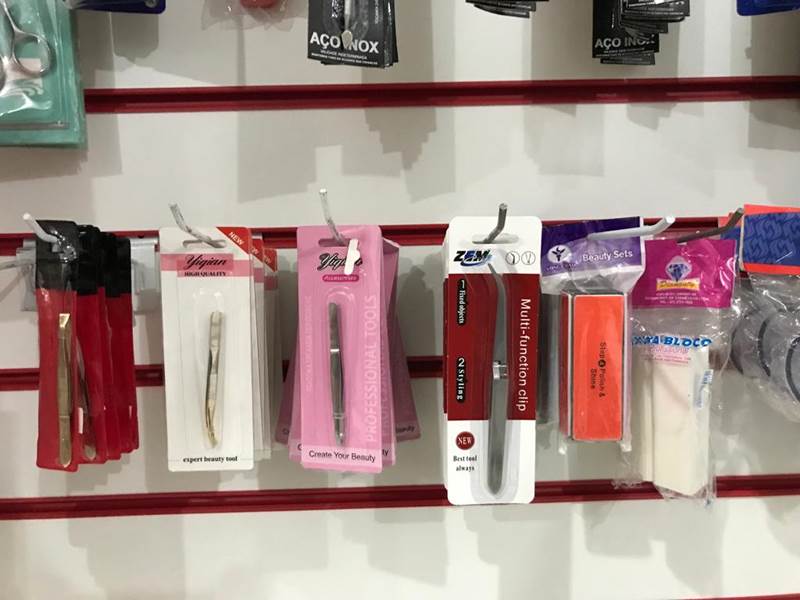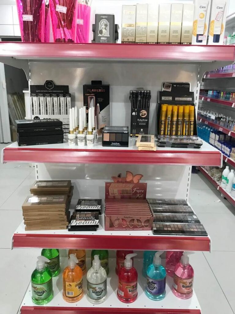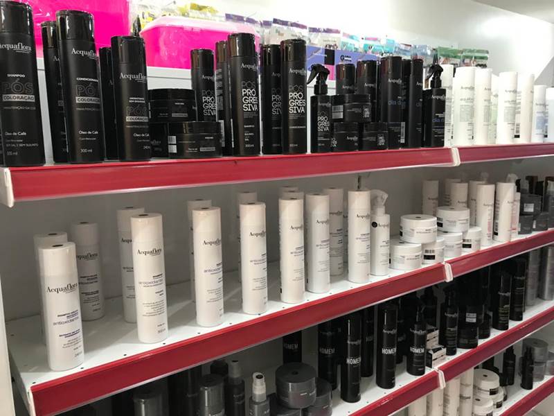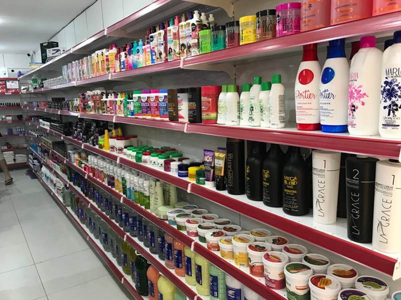 Cremes, condicionadores, shampoos, batom, maquiagem, esmalte, unha de acrigel, produtos para alongamento de unhas, uma grande linha de apliques (cabelos) afro, além de acessórios para profissionais manicure, depiladora, maquiadora, trancista, cabeleireiros e barbeiros.