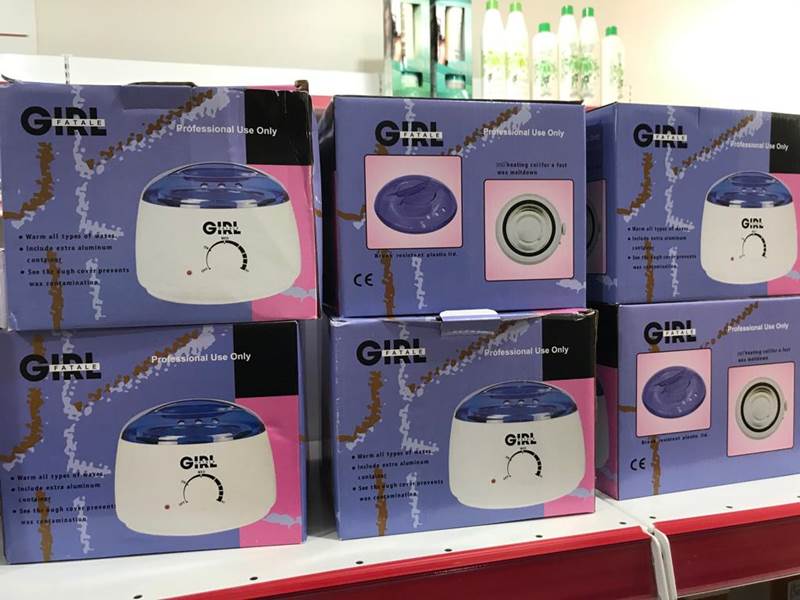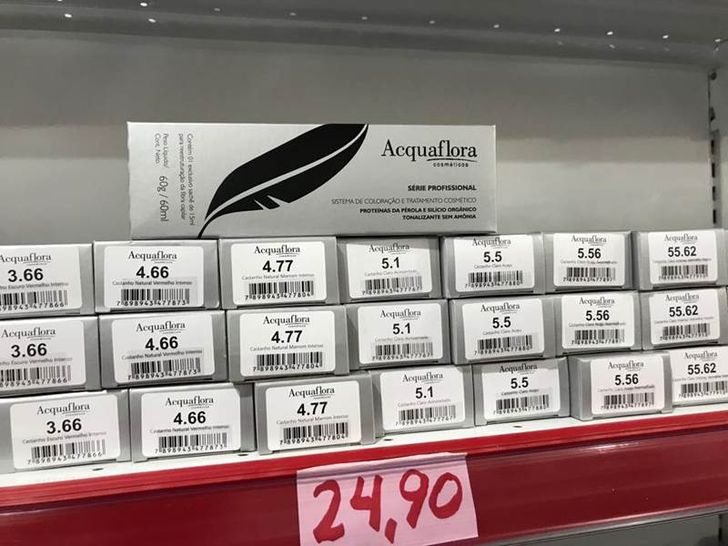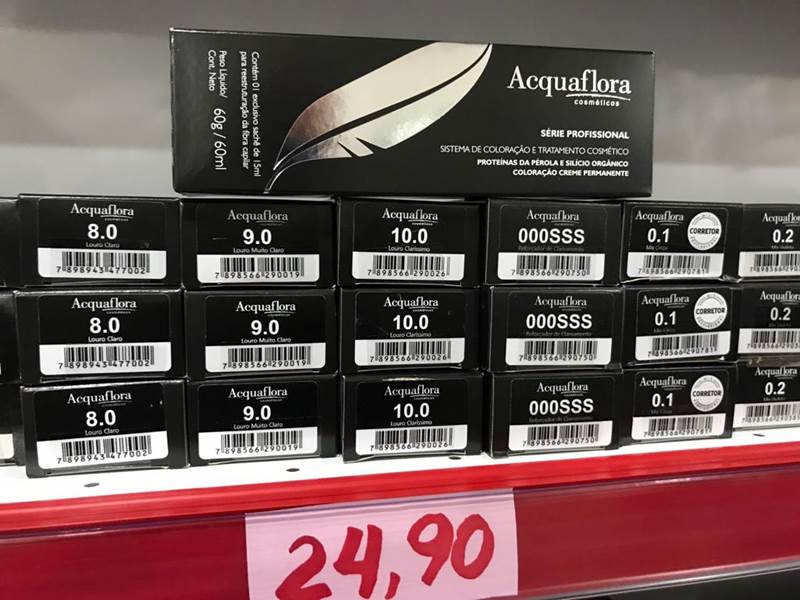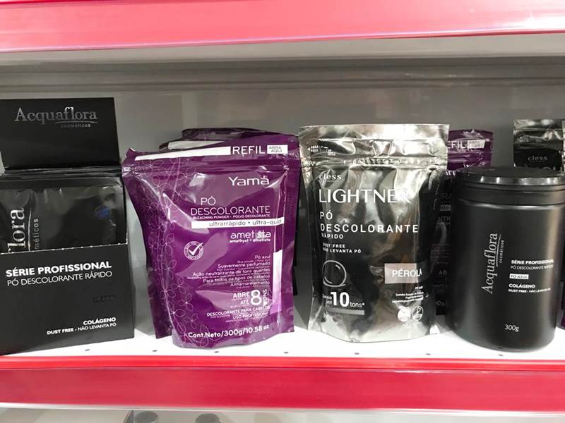 Em destaque também artigos como a panela para derreter cera e o aparelho para depilação; coloração e tonalizante Acquaflora, acessório para fazer alongamento de unhas, pó descolorante (várias marcas), Touca Siliconada Profissional, Bigodim para Cabelo, Touca de Amaciamento “Anti-Stress” (Isopor/Metalizado) para tratamento capilar e hidratação, aparelho de barbear, etc.