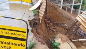 Trecho de rua desmorona no Jardim Bela Vista em Leopoldina