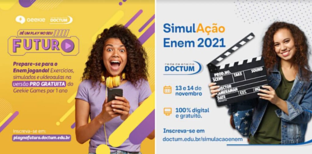 Alinhado às tendências e demandas educacionais contemporâneas, a Rede de Ensino Doctum anuncia uma parceria com a Geekie – empresa que é referência em educação inovadora no Brasil e no mundo. Através do projeto Play no Futuro, a Doctum passa a oferecer acesso gratuito à plataforma de educação Geekie Games, para que os estudantes e interessados tenham acesso a um jogo com videoaulas, exercícios e simulados que prepara os usuários para o Exame Nacional do Ensino Médio (Enem) e vestibulares. Com essa parceria, os interessados terão acesso gratuito à versão Pro durante um ano.