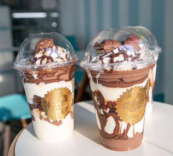 A nova confeitaria chega trazendo como destaques o “Copo da Felicidade” (foto abaixo), “Lacradinho” – bolo de pote, o “Pedacinho do Céu”, e várias delícias, como bolos para festa infantil, doce de vitrine, pudim, barra de chocolate; além de servir café expresso (vários sabores de fatias de bolos para acompanhar seu café, brownie com nutella ou com sorvete, palha rústica – um sucesso e vários sabores de cones trufados. Renata informou que em breve a confeitaria terá frappés, soda italiana e taças de açaí.