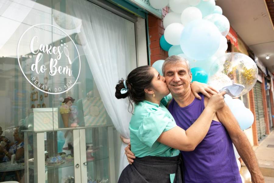 No dia da inauguração de sua confeitaria, Renata recebeu a visita de amigos e familiares, que levaram seu abraço à empreendedora. Dentre os momentos que marcaram a inauguração estão os abraços especiais que Renata recebeu de seus pais, Marcos Olímpio Cunha Lopes e Antônia Maria do Bem Lopes.