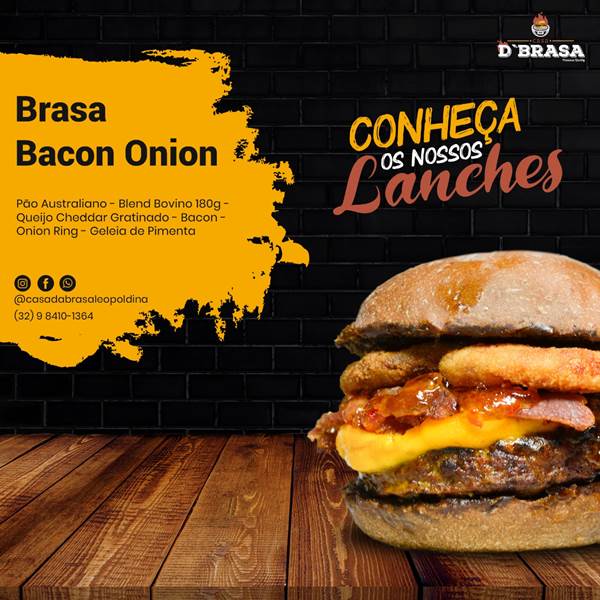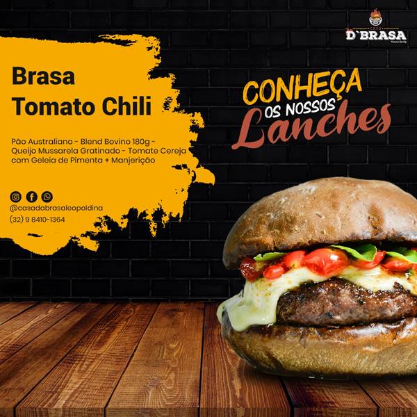 Outras opções são o Brasa Tomato Chili: feito com Pão Australiano – Blend Bovino 180g – Queijo Mussarela Gratinado – Tomate Cereja com Geleia de Pimenta + Manjericão; Brasa Crocante é produzido com Pão Brioche – Blend Bovino 180g – 2X Cheddar – Bacon Crocante; conheça também o Brasa Bacon Onion – Pão Australiano – Blend Bovino 180g – Queijo Cheddar Gratinado – Bacon – Onion Ring – Geleia de Pimenta. (Confira no final da matéria o cardápio completo e o número do telefone/WhatsApp do Delivery).