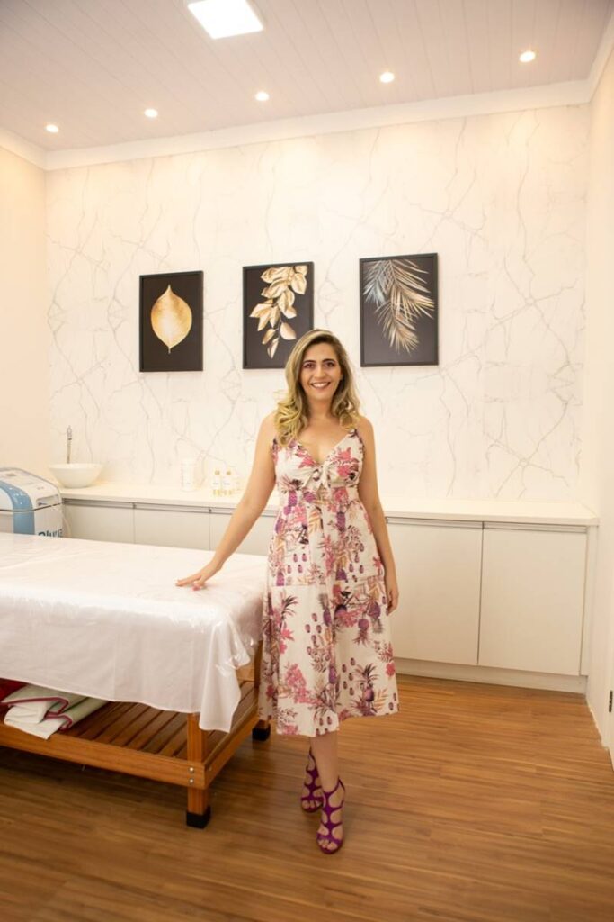 “O cuidado com o resultado é o nosso diferencial”, comentou Bruna (foto). “Nós temos uma maestria, uma delicadeza de cuidar de cada paciente que passa aqui. Toda a nossa equipe de Biomédicas e Nutricionistas é muito dedicada, engajada para realmente se comprometer com o resultado dos nossos pacientes”. Ao todo, 7 colaboradoras atendem na Clínica Sbelta.