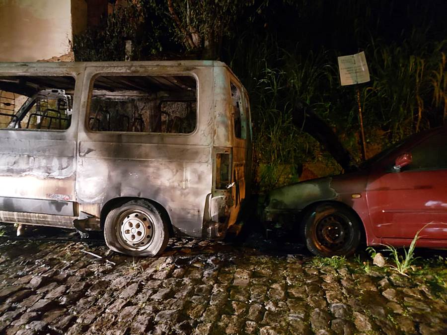 Uma Van que estava estacionada na Rua São Pedro, no Bairro Mina de Ouro, em Leopoldina, pegou fogo na madrugada desta quarta-feira, 10 de novembro. O incêndio ainda atingiu um automóvel VW Polo que estava estacionado próximo ao veículo.