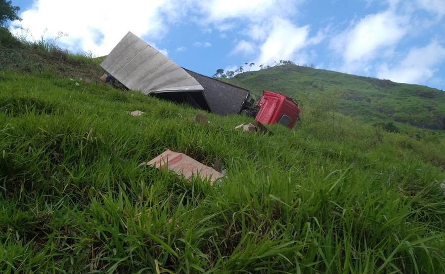 Um caminhão carregado com 130 barris de chopp tombou em uma ribanceira localizada às margens da BR-267, na altura da Serra de Argirita.