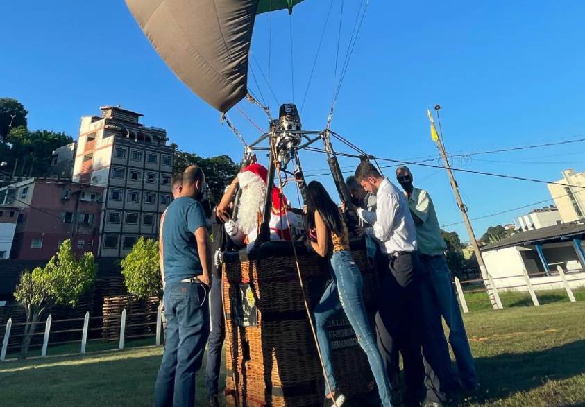 Além do colorido no céu da cidade, o evento reuniu alunos de escolas municipais no Parque de Exposições José Ribeiro dos Reis, ocasião em que aguardaram a chegada do Papai Noel, que veio no balão.