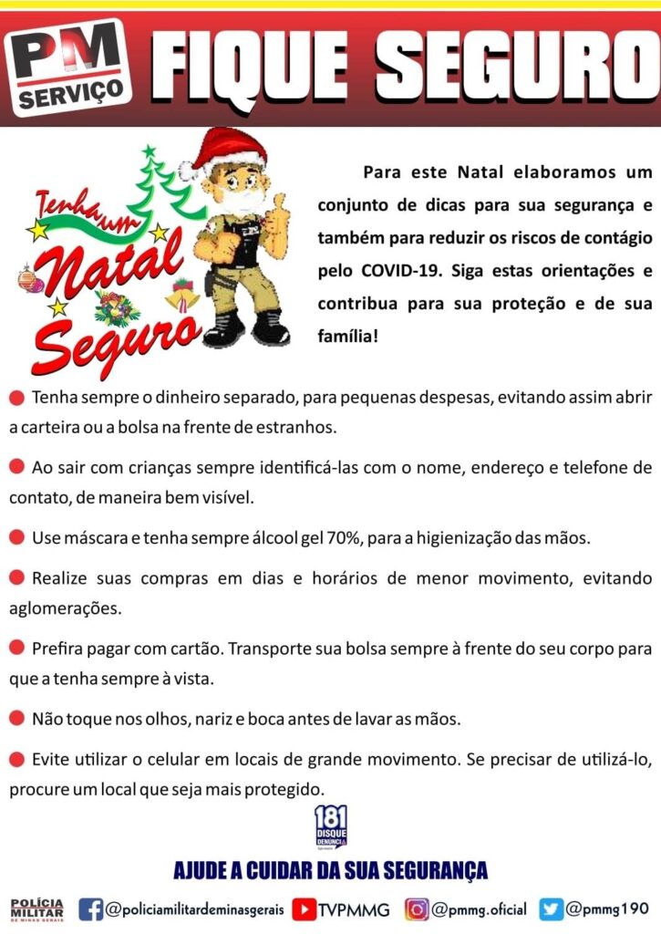 A 37ª Companhia de Polícia Militar de Leopoldina realizou nesta terça-feira, 14 de dezembro, uma ação informativa com dicas de segurança referente à Operação Natalina 2021 da Polícia Militar de Minas Gerais.