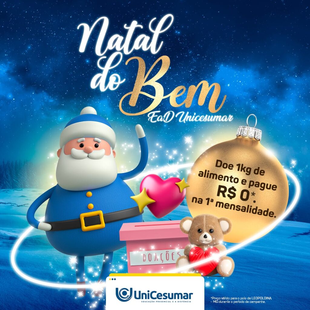 Instituição oferece mais de 80 cursos de graduação e mais de 100 cursos pós-graduação em EAD. De acordo com a Unicesumar os alimentos arrecadados durante a Campanha de Natal do Bem serão doados à famílias carentes.