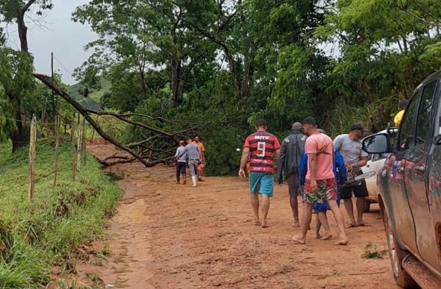 Forte temporal provoca queda de árvores e barreiras em Leopoldina