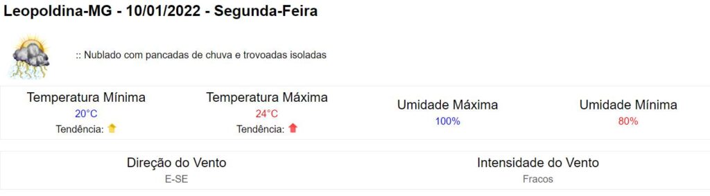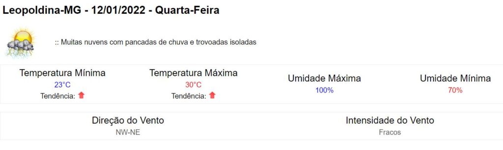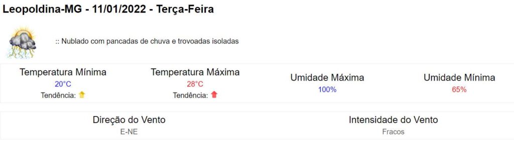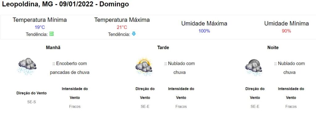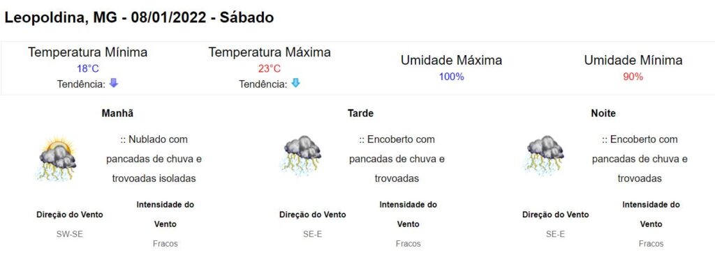 Veja a previsão do tempo para Leopoldina nos próximos dias: