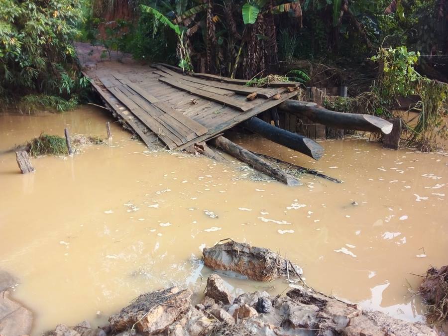Uma ponte cedeu e foi interditada nesta quinta-feira, 3 de fevereiro, em Providência, zona rural de Leopoldina. Equipes da prefeitura atuam para recuperar a área.