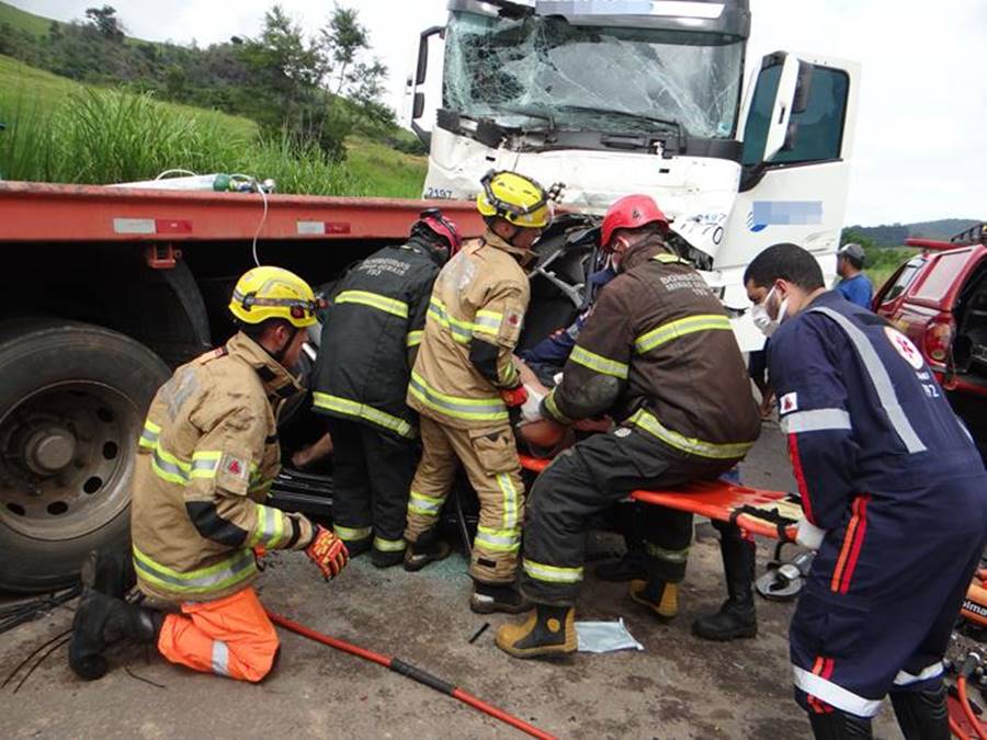 De acordo com a Polícia Rodoviária Federal, o acidente aconteceu nas proximidades do distrito de Bom Jesus da Cachoeira, ocasião em que uma carreta transportando minério colidiu em um Hyundai HB20, placas de Juiz de Fora, que ficou prensado em um caminhão guincho que transportava um trator.