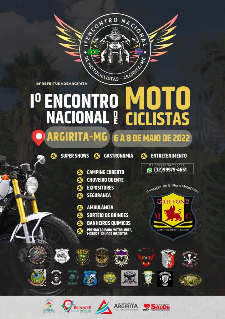 A Prefeitura de Argirita anunciou seu 1º Encontro Nacional de Motociclistas para os dias 6, 7 e 8 de maio.