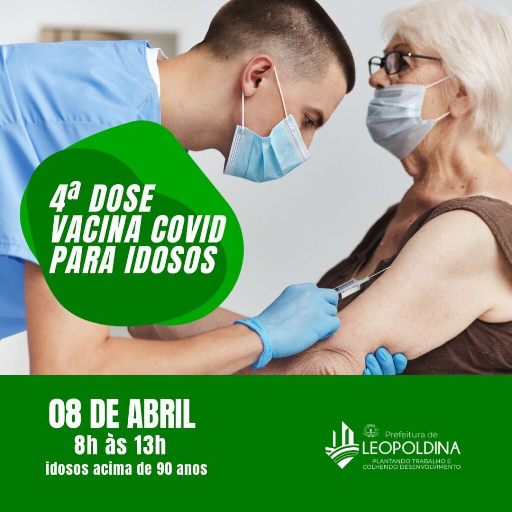 A Prefeitura de Leopoldina, por meio da Secretaria Municipal de Saúde, informou na tarde desta quarta-feira, 6 de abril, que realizará na próxima sexta-feira (8) a aplicação da 4ª dose de vacina contra a Covid-19 para idosos acima de 90 anos.