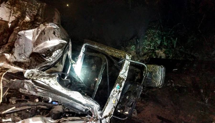 Os bombeiros militares do 7º Pelotão BM de Leopoldina foram acionados e a equipe composta pelo Sargento Ferrari e os soldados Machado, Esteves, Silva e Bianque retirou o corpo do caminhoneiro que estava preso às ferragens.