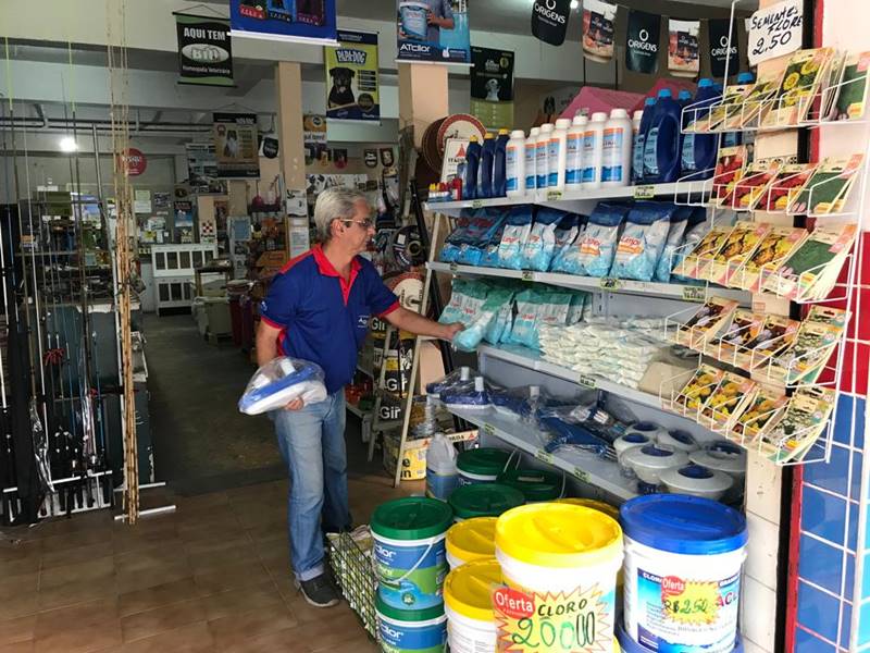 Trabalhando também com uma linha de artigos PET, a Agro Rural comercializa produtos para outros segmentos, como limpeza de piscinas, pássaros, jardinagem e calçados. “Trabalhamos com uma linha PET completa. São medicamentos, vacinas para cães e gatos, rações, além de acessórios como coleiras, correntes, peitoral, casinhas, comedouros e bebedouros para cães e gatos”, informou Eduardo.