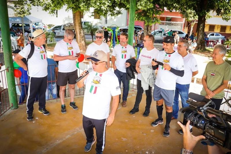 O dia começou bem cedinho com dezenas de pessoas participando da caminhada do imigrante, saindo da Capela Santo Antônio de Pádua, construída por um grupo de colonos italianos em 1915, no bairro da Onça, passando pela comunidade da Boa Sorte, até a praça central do distrito de Tebas. Em seguida foi a vez dos ciclistas seguirem pela rota.