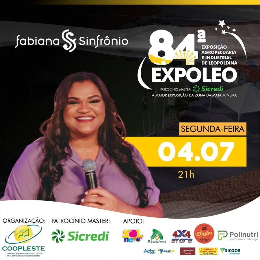Dia 4 de julho, segunda-feira, show Gospel às 21h00, com a apresentação de “Fabiana Sinfrônio”. Na terça (5) a noite de atrações da Expoleo tem Show de Calouros, abertura com a banda “Café Society”.
