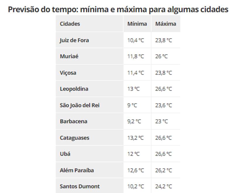 A semana do feriado de Corpus Christi será de frio e céu aberto entre esta terça (14) e domingo (19) em algumas cidades da Zona da Mata e Campo das Vertentes.