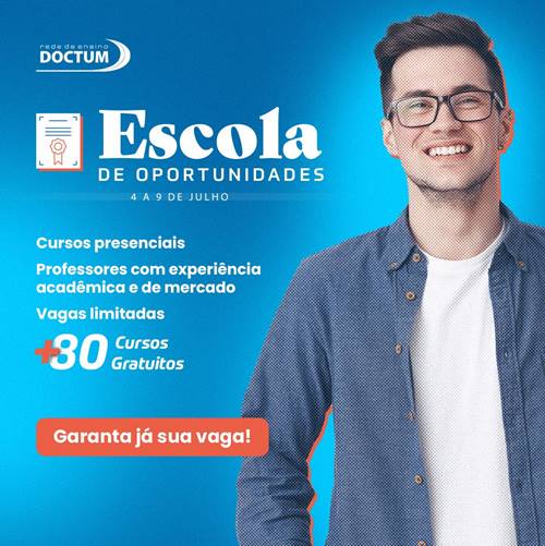 A Rede de Ensino Doctum, pensando na capacitação dos universitários, abre inscrições para a Escola de Oportunidades. Um projeto que visa alavancar a carreira dos jovens através de mais de 80 cursos gratuitos com certificado.