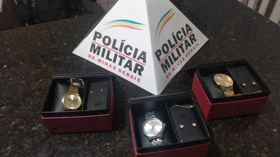 Na Rua Gustavo Monteiro de Castro os militares se depararam com um rapaz com as mesmas características do autor. O jovem foi abordado e com ele localizados kits contendo três relógios, colar e brincos novos dentro da caixa. Além disso, ele estava com a mão e joelho apresentando sangramento.
