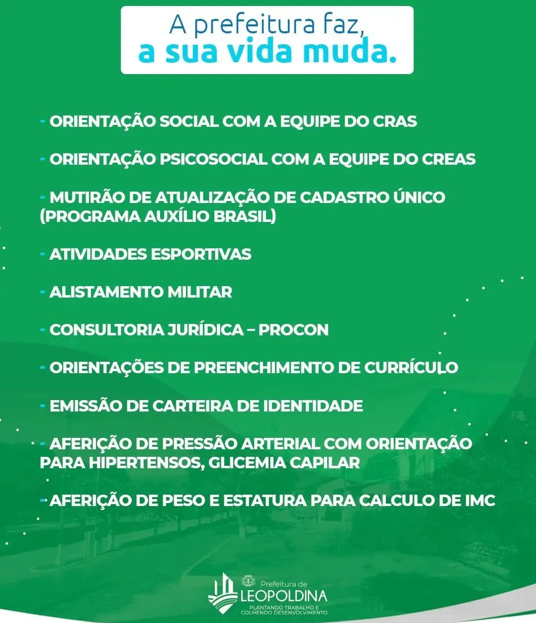“O ‘Prefeitura na Comunidade’ tem o objetivo de aproximar os moradores dos distritos e bairros de Leopoldina aos serviços prestados pelas secretarias municipais, levando também conhecimento e, ao mesmo tempo, promovendo momentos de lazer para as pessoas. É muito importante a prefeitura estar cada vez mais perto da nossa gente”, destacou o prefeito Pedro Augusto.