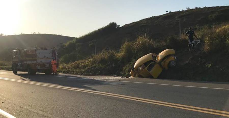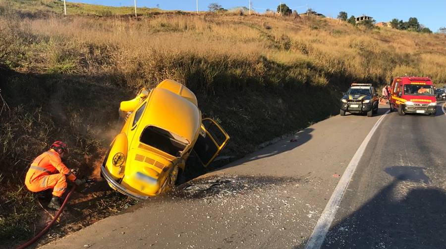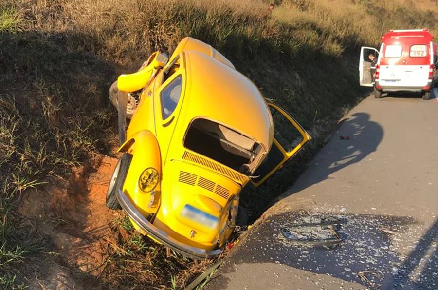 Duas pessoas ficaram feridas na tarde deste domingo, dia 24 de julho, em um acidente envolvendo um veículo VW Fusca, de Leopoldina, na altura do Km 764,5 da BR-116, entre o Trevo do Alto do Cemitério e o Trevo de acesso ao Pórtico de Leopoldina.