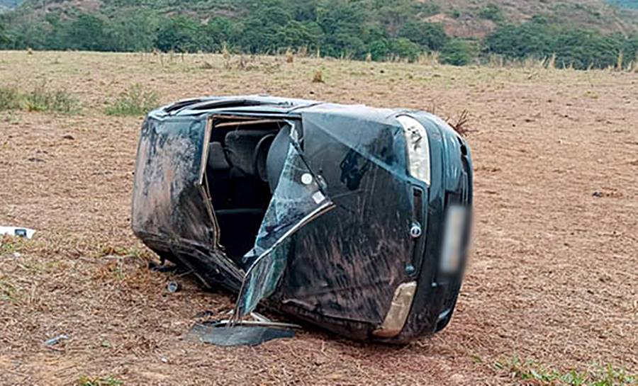 Um carro com quatro pessoas capotou na manhã deste domingo, 24 de julho, próximo a ponte da estrada da Empa, em Cataguases.