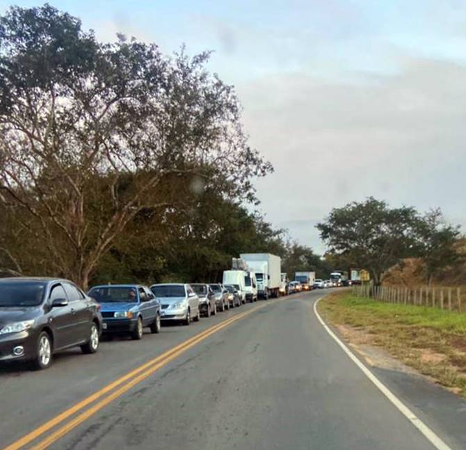 O congestionamento chegou a aproximadamente 4 km e logo após os trabalhos das equipes no local o trânsito foi liberado.