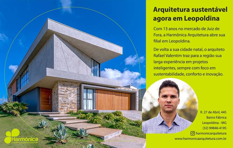 Leopoldina conta agora com a Harmônica Arquitetura, empresa com 13 anos de experiência no mercado de Juiz de Fora e que tem à frente o arquiteto leopoldinense Rafael Valentim (foto acima).