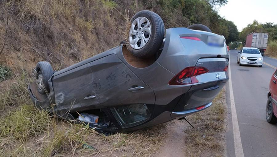 Um automóvel Hyundai HB20, azul, com placas de São Paulo e vinculado a uma empresa de locação de veículos, capotou na tarde desta sexta-feira, 19 de agosto, na rodovia BR-120 – estrada que liga Cataguases a Leopoldina, na altura do Km 743, próximo ao Motel Vega.