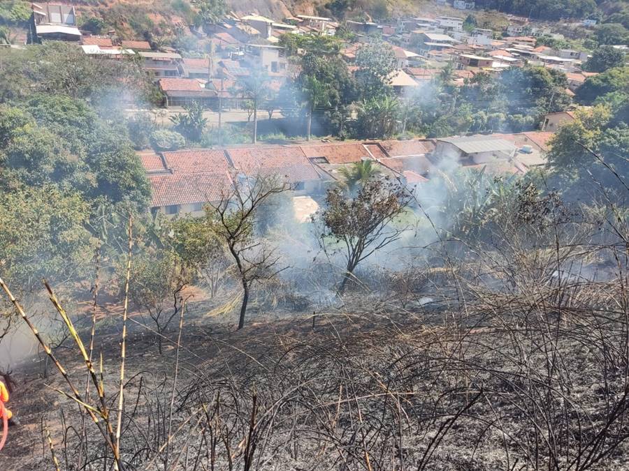 De acordo com militares do 7º Pelotão de Bombeiros Militar de Leopoldina, o incêndio ameaçou residências localizadas na parte baixa do Bairro Vale do Sol.