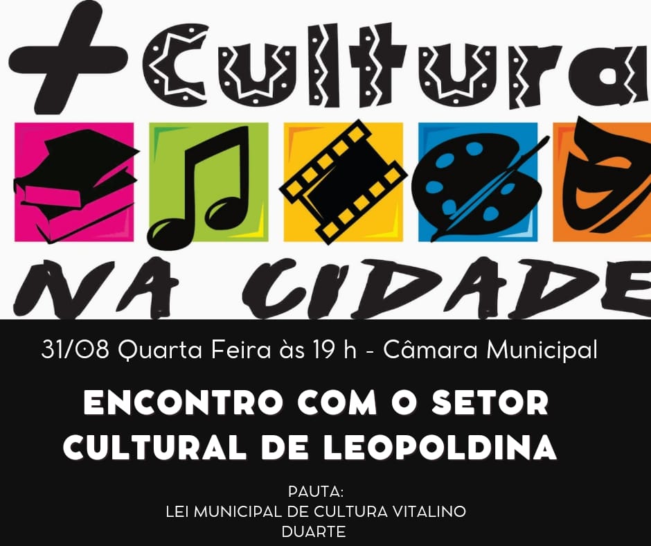 Representantes da área cultural em Leopoldina se reunirão nesta quarta-feira, 31 de agosto, com o objetivo de discutir o setor e reivindicar mais apoio para artistas e produtores culturais. O encontro acontece na Câmara Municipal a partir das 19h00.