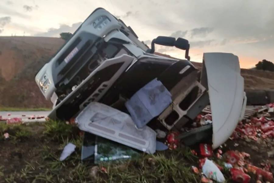 Uma carreta carregada com cerveja tombou na tarde de quarta-feira (7) na BR-116, próximo ao Distrito de Bom Jesus da Cachoeira, em Muriaé. O motorista de 54 anos ficou preso às ferragens, mas foi retirado por outros caminhoneiros que passavam pelo local.