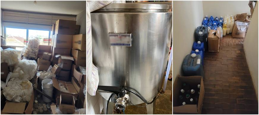 De acordo com as informações apuradas pelo jornal O Vigilante Online junto à Vigilância Sanitária Municipal, foram encontrados equipamentos para produção, matérias-primas, embalagens, rótulos, produtos armazenados em caixas, prontos para serem distribuídos, além de produtos com validade expirada.