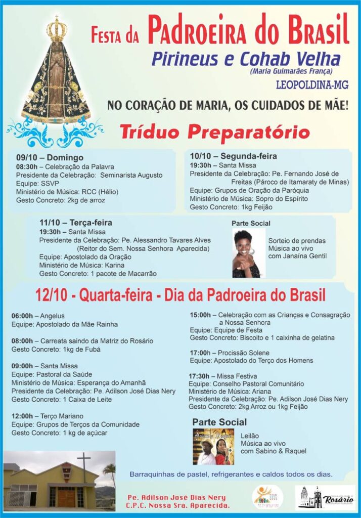 Programação da Festa da Padroeira do Brasil na comunidade da Capela Nossa Senhora da Conceição Aparecida