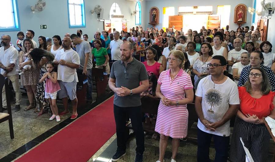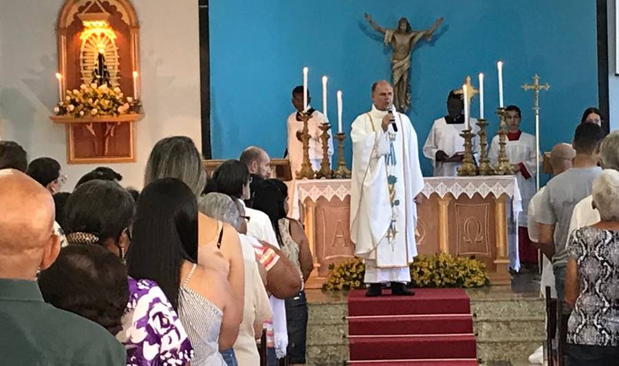 Às 09h00, o Padre Adilson José Nery, Pároco da Paróquia do Rosário presidiu a celebração da Santa Missa.
