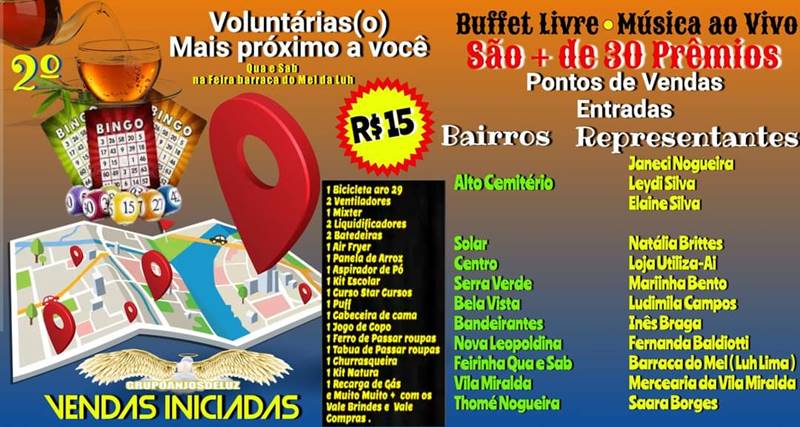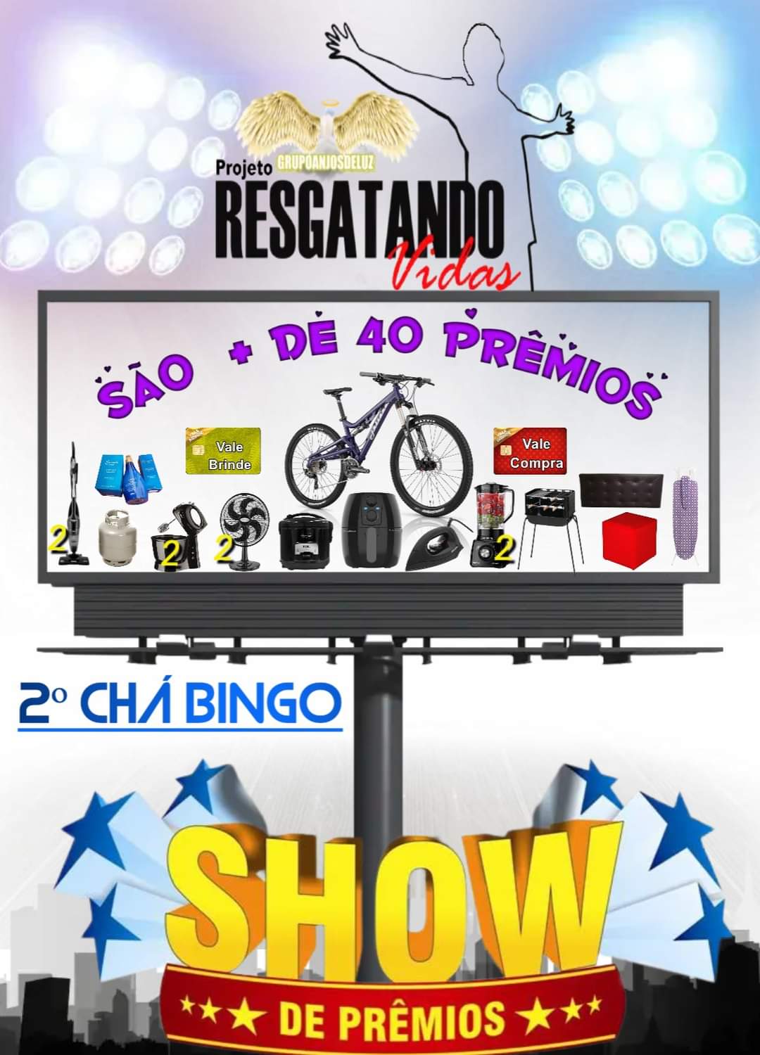 Com mais de 40 prêmios, este 2º Chá Bingo está com entradas antecipadas à venda por R$ 15,00, com direito a uma rodada do bingo, buffet livre e música ao vivo com Renan Salomão e participação especial de Gustavo. Apresentação do radialista Marcos Paixão.