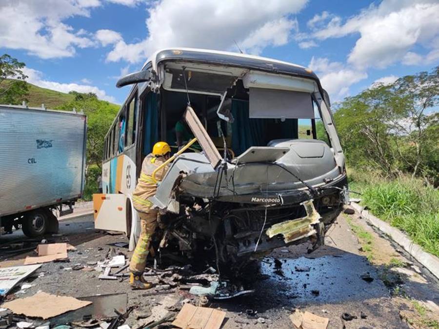 Segundo informações do Corpo de Bombeiros, três veículos se envolveram na ocorrência: um ônibus, um caminhão e um carro de passeio.