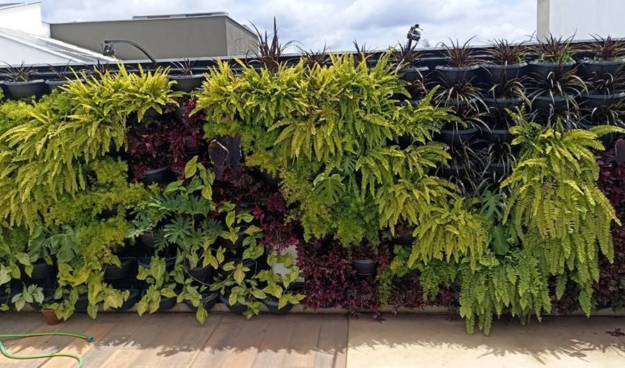 Um dos destaques da empresa Hera Paisagismo & Jardinagem, os jardins verticais são um produto de alto padrão, implantado respeitando todas as técnicas necessárias e contando com sistema de irrigação individual e iluminação para o painel vertical.